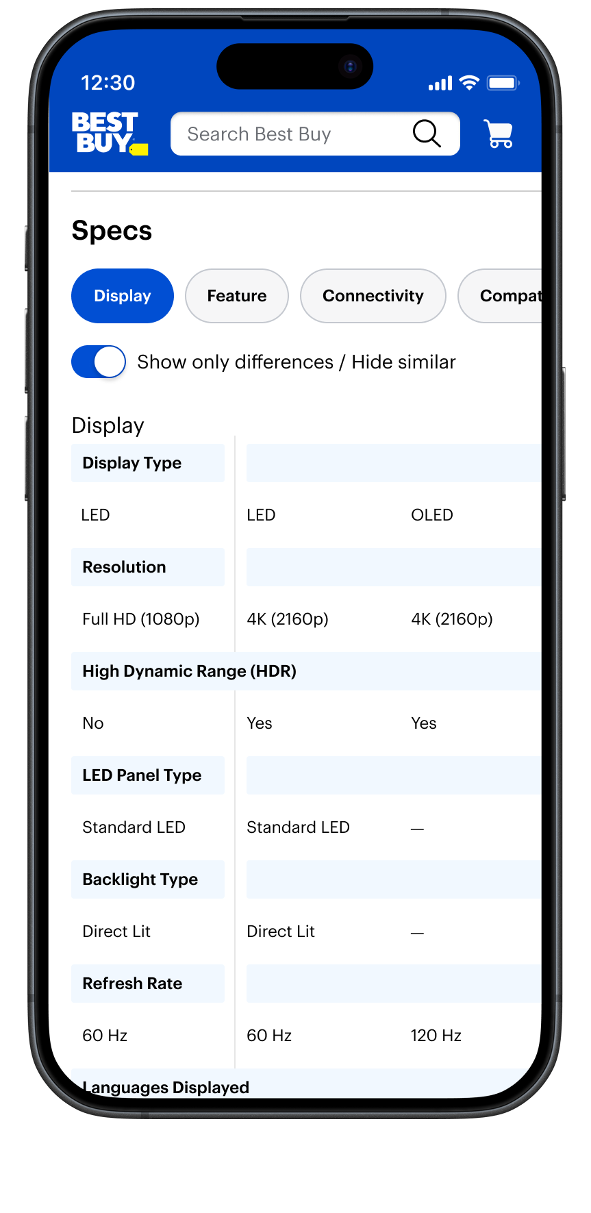 I led the revision of the compare experience within the product detail pages on bestbuy.com and native app. My strategy to build on the existing, limited experience by incorporating engaging features and valuable content that customers were already using to compare products on their own terms was successful.